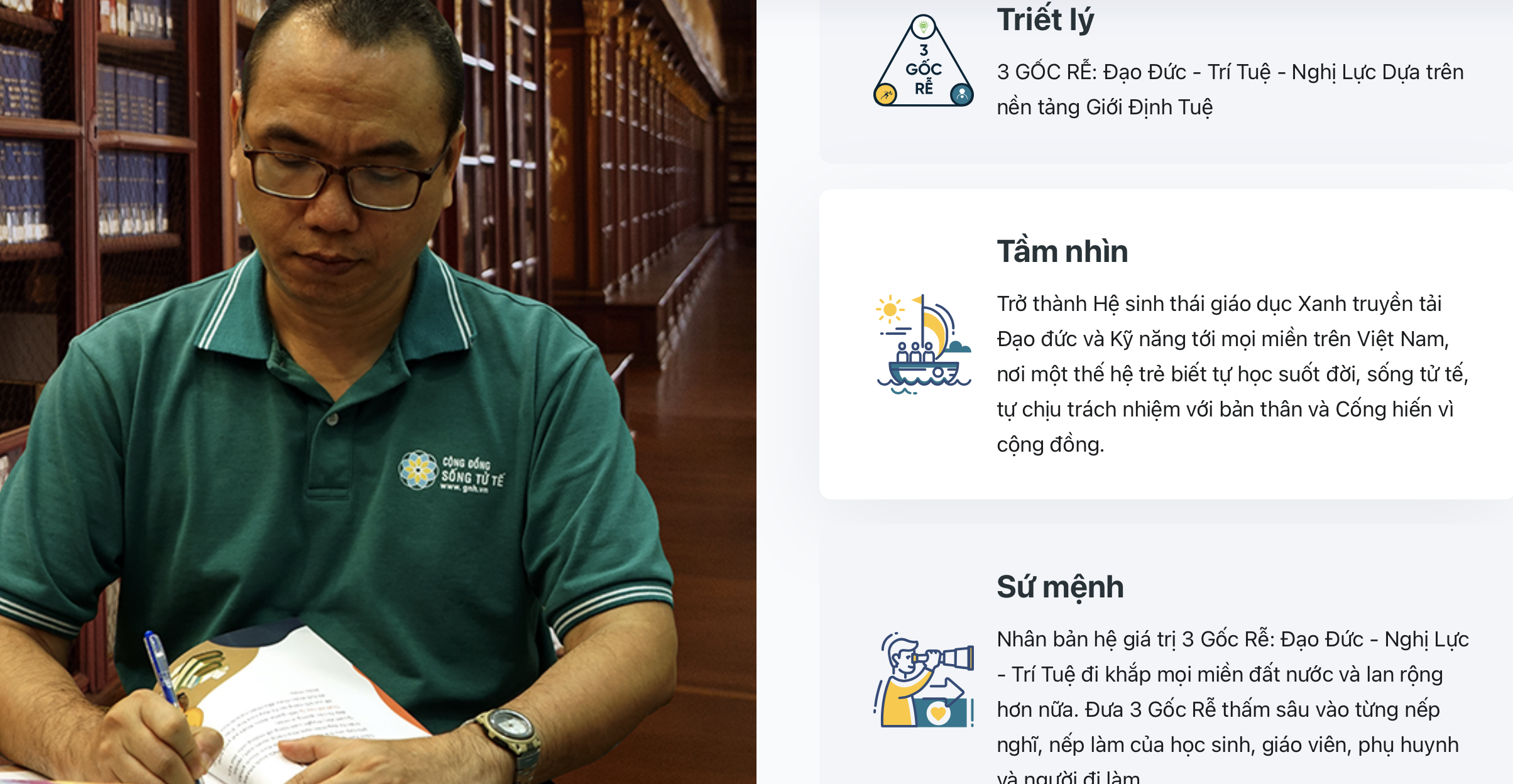 3 GỐC RỄ: Đạo Đức – Trí Tuệ – Nghị Lực. Dựa trên nền tảng Giới Định Tuệ